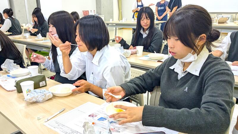 この日は、豆腐を作る際に豆乳を固めるための凝固剤について、学びました。