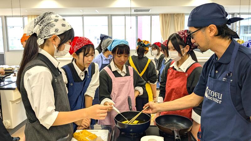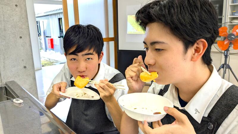 油揚げ用の豆腐を使い、グループ毎に油揚げを作って食べました☆