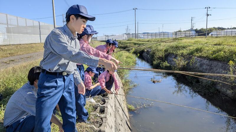 1年4組のLHR企画として、校舎脇の用水路で釣り大会を実施しました☆