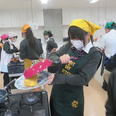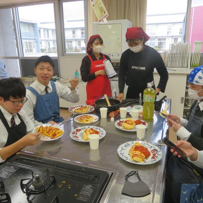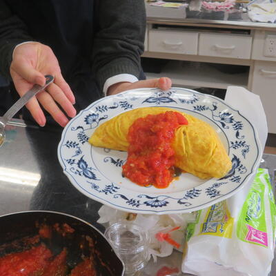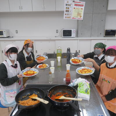 生徒たちは、炒めたご飯を卵焼きで包み、お皿に盛り付ける工程に真剣に取り組み、それぞれの個性が光るオムライスを完成させました。完成した料理を味わいながら、トマトの風味や食感をじっくりと感じることができ、農業の大切さや調理加工の技術について改めて深く学ぶ貴重な機会となりました。今後も、食品に関する学びをさらに深めていけるよう、継続して取り組んでまいります。