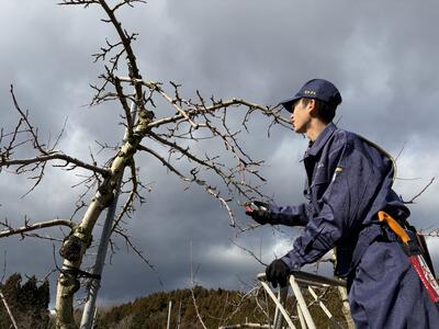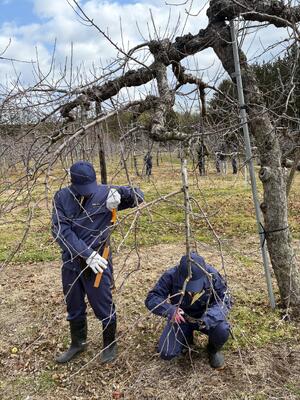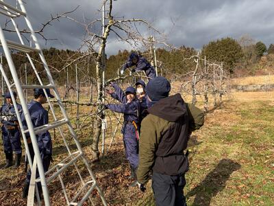 先日、宮城県農業・園芸研究所リンゴ圃場にて、リンゴのせん定講習会を開催していただきました。