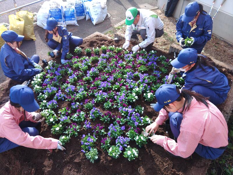 今回は、ビオラ約700株を植栽しました。