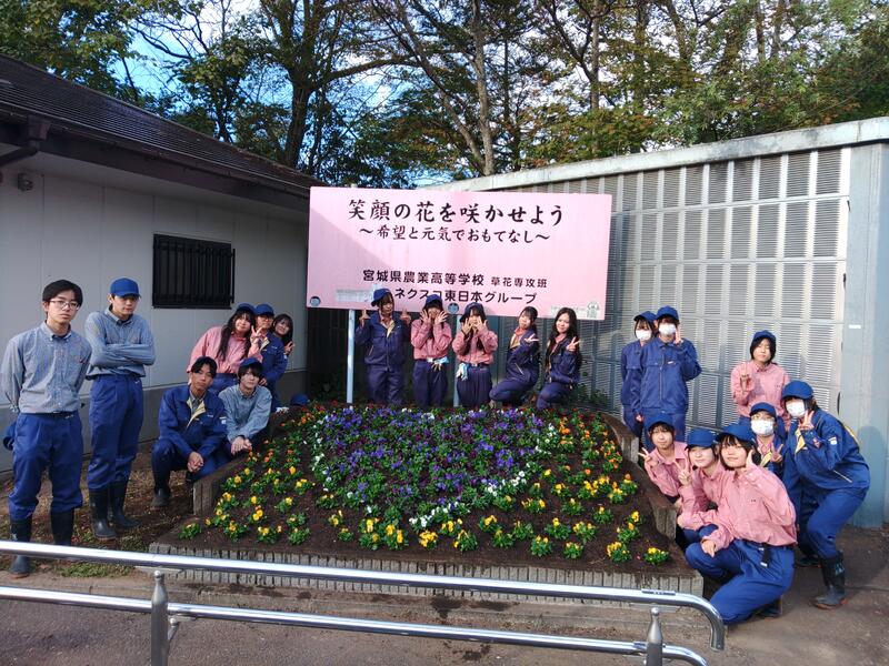 11月5日、山田インターチェンジにおいて、2年生の学科選択科目「造園植栽」を履修している20名が、株式会社ネクスコ・トール東北の社員の皆さまと一緒に植栽活動を行いました。