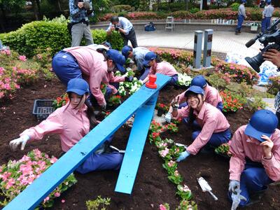 4カ所で合計約3000株以上を、草花部門の生徒3年生11名と草花部門と造園部門の2年生25名が植栽し、県庁の植栽にはメディア4社も取材に駆けつけてくださいました。