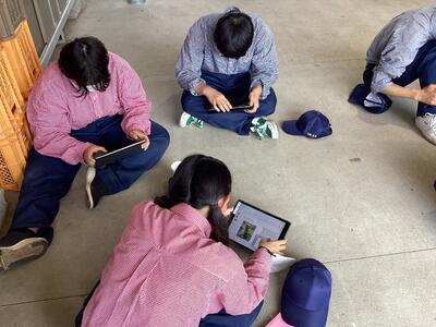 圃場の周りに生えている雑草について、iPadを用いて調査を行いました!