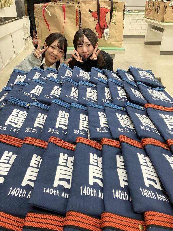 創立140周年記念として、生活科の有志で腰袋と米袋バッグを製作し、宮農祭で販売しました!