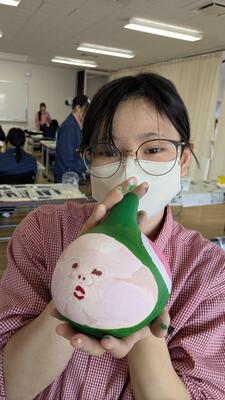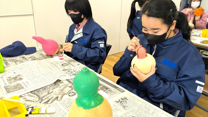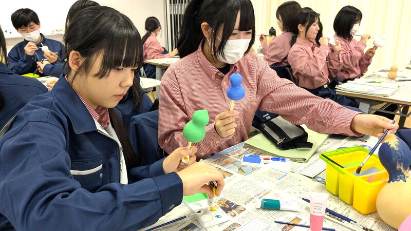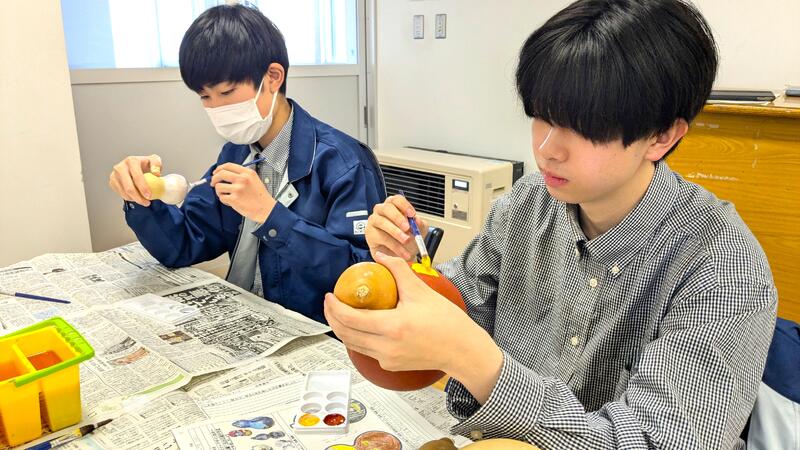 生活科の2年生が栽培したヒョウタンを使い、1年生が絵付けを行いました♪