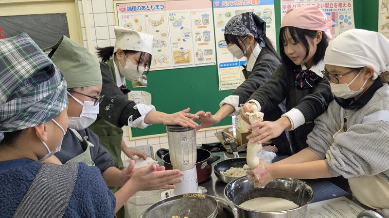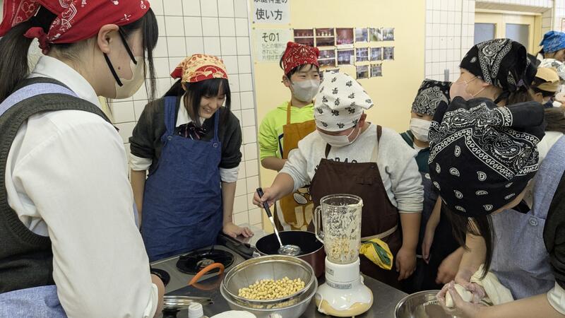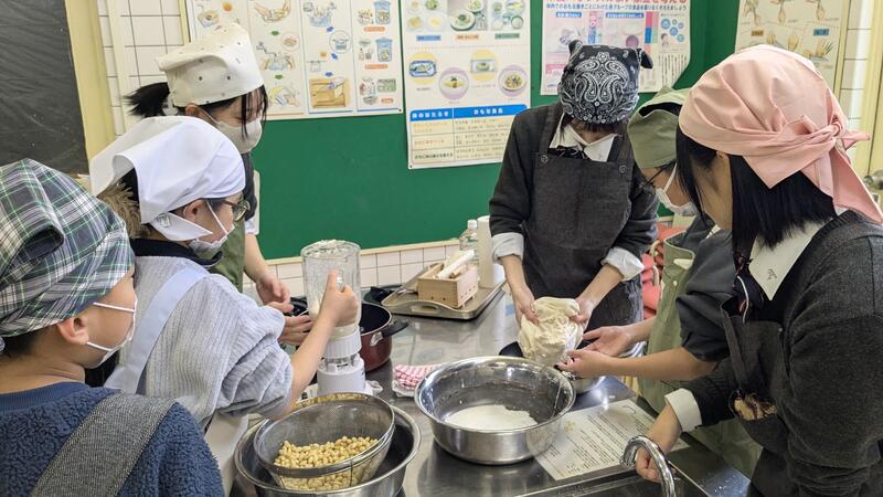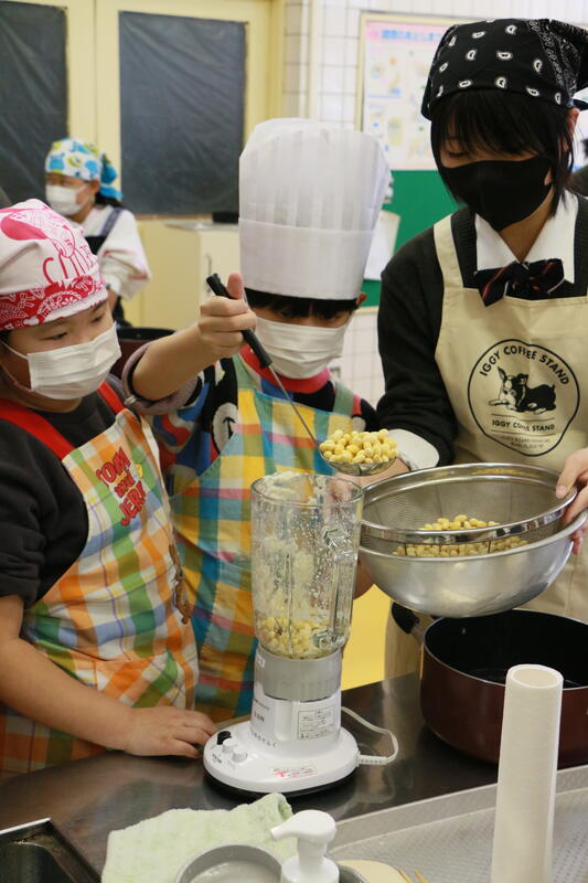 育てた大豆を使い、1月に豆腐作り交流会を行いました☆