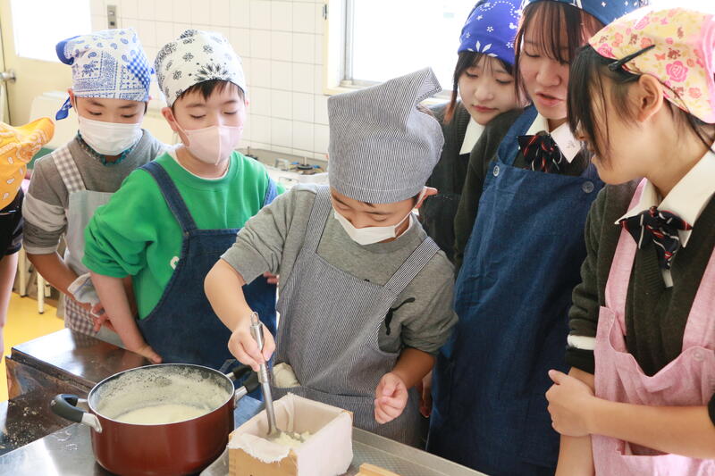 豆腐作りの講師は、ジュニア豆腐マイスターの資格を持つ、生活科1年生です☆
