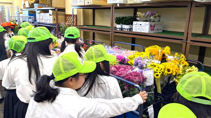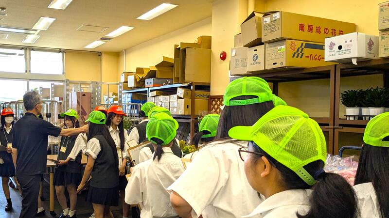 夏季総合実習の一環として、草花や野菜の流通について、市場関係者の方々に教えていただきました。
