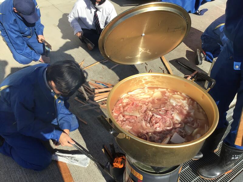 そんな中、髙杉先生が農業機械科で栽培した野菜を用いてカレー鍋を作ってくださいました。