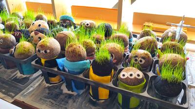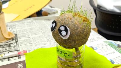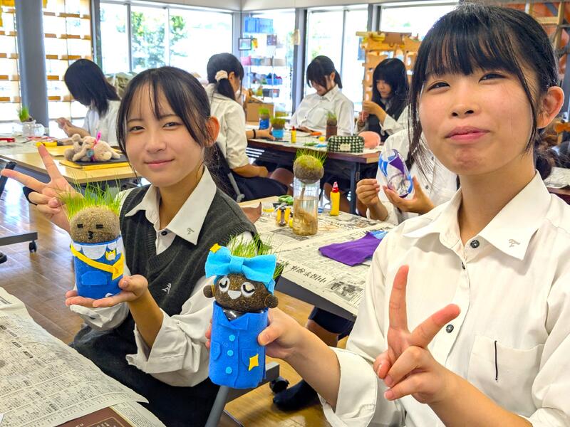 生活科3年生が「生物活用」の授業の一環で、芝(イネ科植物)を使った人形を作りました♪
