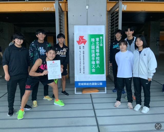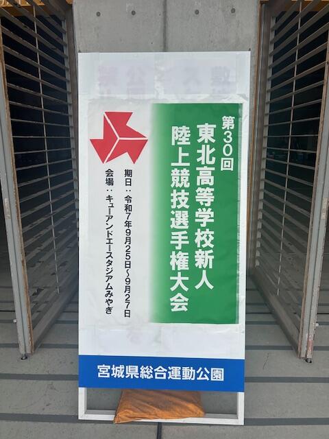 9/25(木)から9/27(土)にかけてキューアンドエースタジアムみやぎ(グランディ21:宮城県総合運動公園陸上競技場)で開催された東北新人大会に、県新人大会で勝ち抜いた1名の選手が出場しました。