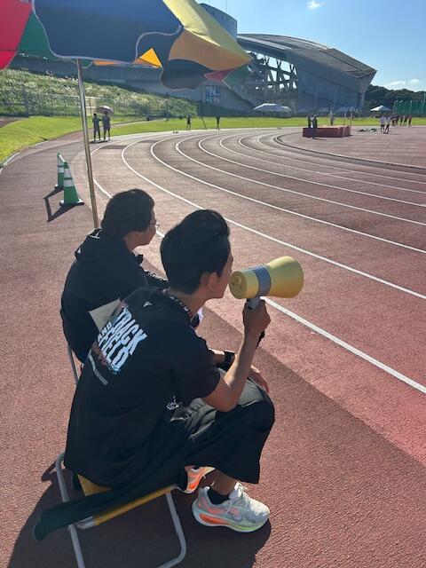 今大会は地元宮城県での開催ということで、運営の補助役員として、本校陸上競技部員1年生2年生も大会に参加しました。各県を勝ち抜いた選手達の陰ながらのサポートを責任持って果たしてくれました。朝早くから遅くまで連日お疲れ様でした。次は自分が東北大会に出るという気持ちを持って日々の練習に励んでほしいと思います。
