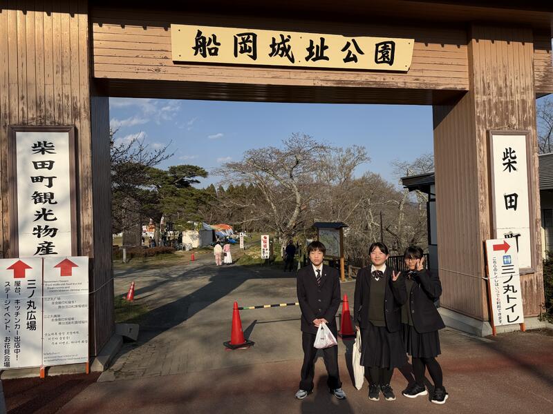 打合せ後は、しばた桜まつりを訪れ、船岡城址公園や千桜橋周辺の桜を見学しました。船岡城址公園では、多くの来場者でにぎわう春の景色に触れ、改めて桜が地域にとって大切な存在であることを実感しました。