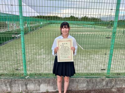 また、県のソフトテニスの表彰式が行われ、女子部の熊谷が功績賞をいただきました。