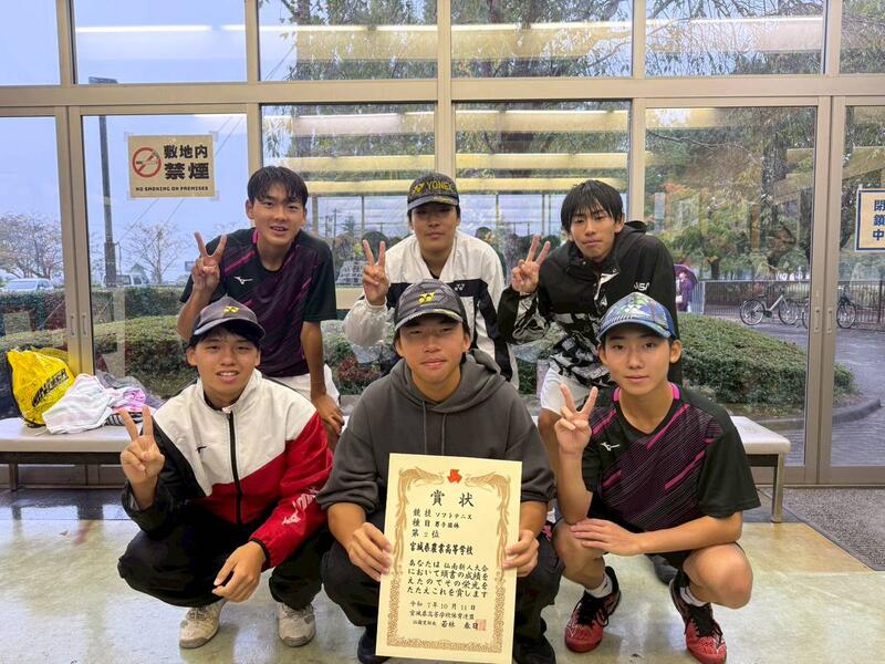 しかしながら、オープニングゲームで新人大会ベスト4の明成高校に勝利した際には、初戦で本校の3番手(村上・佐々木ペア)が明成高校の1番手(個人戦にも出場したペア)を逆転で破るなどの活躍を見せ、多くの方からもたくさんの声をかけていただきました。