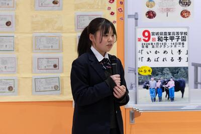 代表として、牛部部長の3年・佐藤希歩さんから、牛を育ててきた思いについて話をしてもらいました。