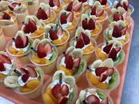 「グレープフルーツ丸ごとゼリー」は果肉をくり抜いて果汁を搾り、皮を器にして作ります。手間はかかりますが、さわやかな果汁が感じられる生徒に人気のデザートです。