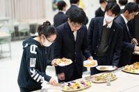 初めて寮で食事をとる1年生は、はじめは緊張の面持ちでしたが、先輩方との会話もはずみ、和やかな会食を楽しんでいる様子でした。